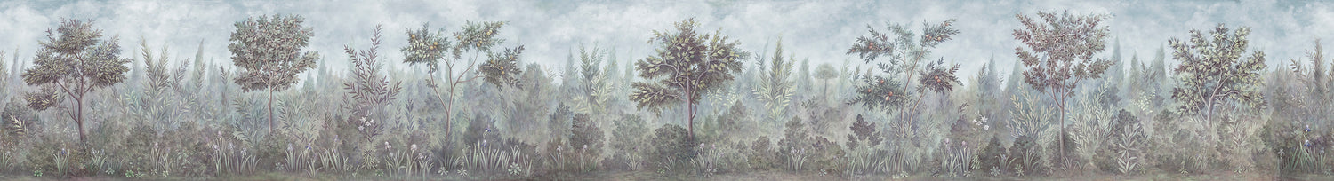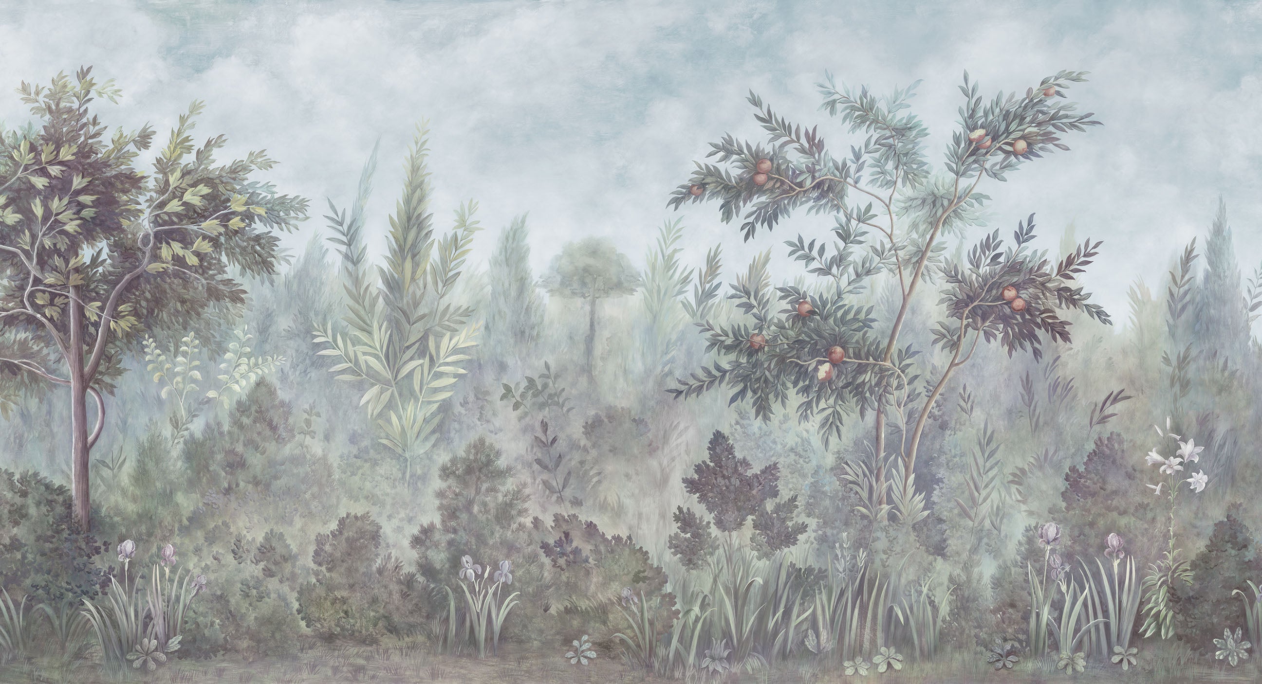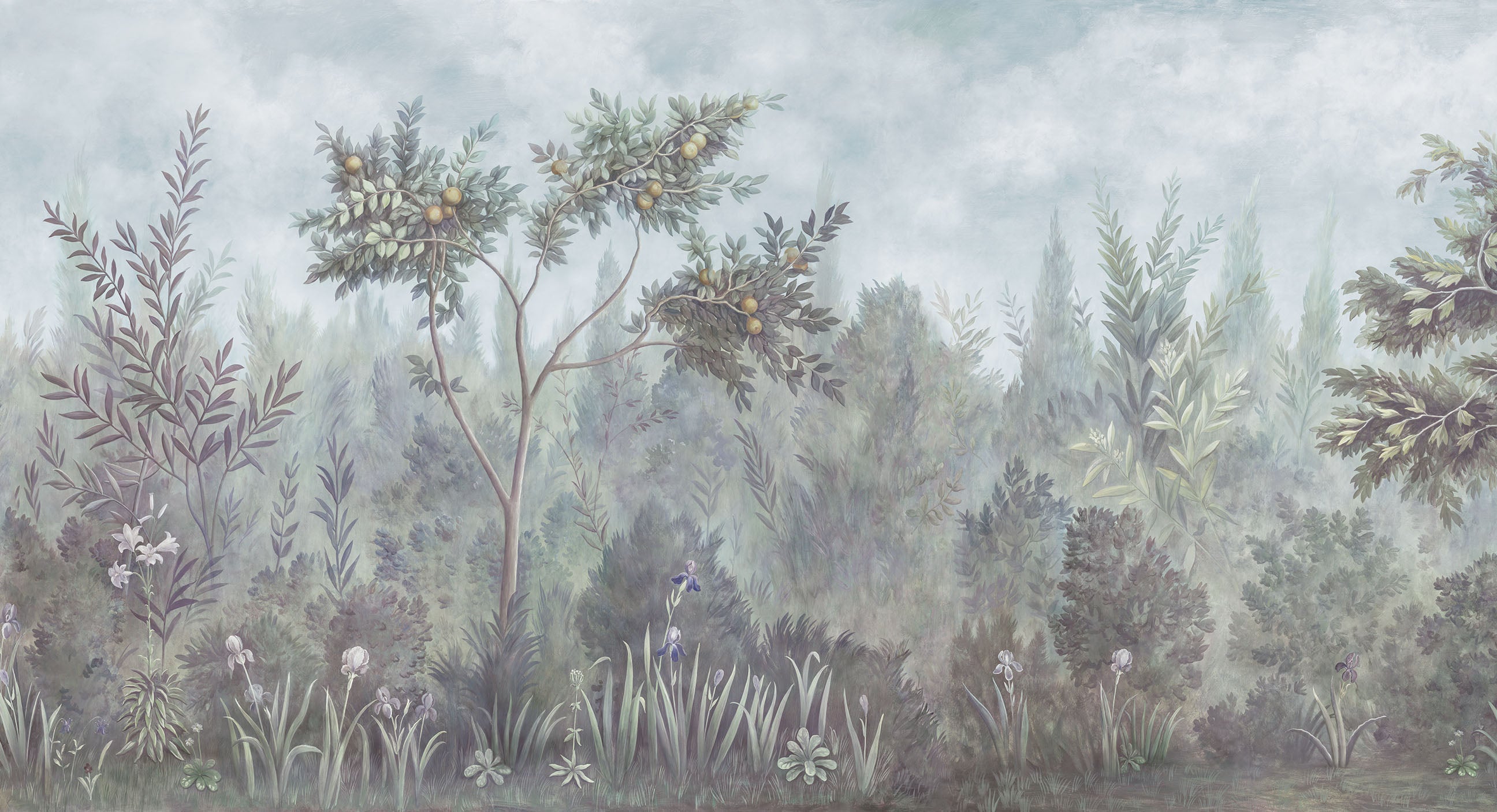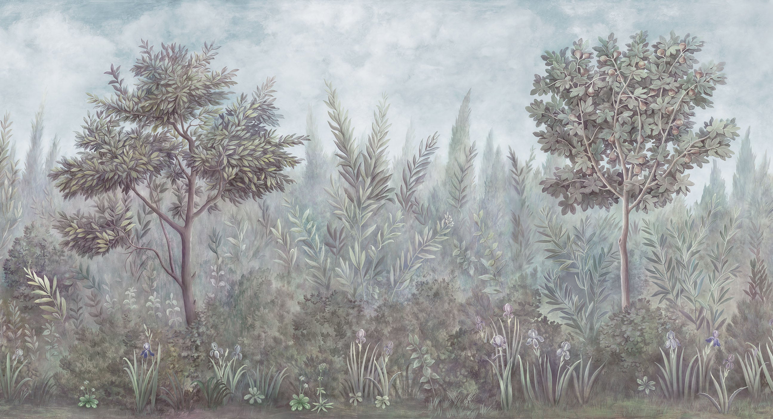 A somewhat wilder version of a classic Roman garden, Giardino was hand painted by Maria using a natural palette of lime paints to evoke the spontaneity and opacity of Buon Fresco. The birds have settled-in unseen, adding a sense of stillness to the verdant scene.